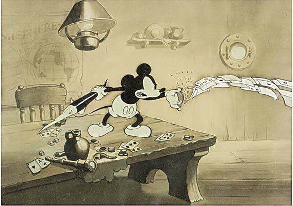 This is an incredible piece that rarely becomes available to the public, said Heritage Auctions vice president and animation and anime art director Jim Lentz. Mickey Mouse is the most iconic cartoon character of all time, and has been for years. Black-and-white Mickey Mouse production cels with their key master backgrounds rarely survive this long, and certainly not in this condition. This is an exceptional piece of animated film history from one of the greatest characters in animated films.